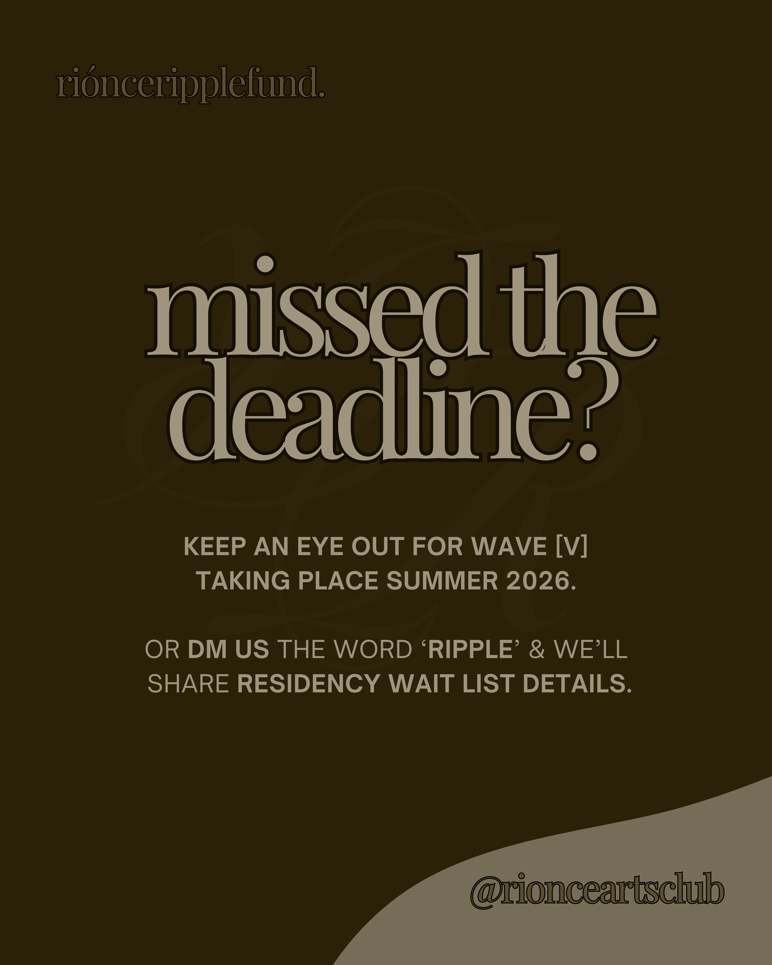 Share the Riónce Ripple Fund post on your social media platforms/ stories, tagging @rionceartsclub.