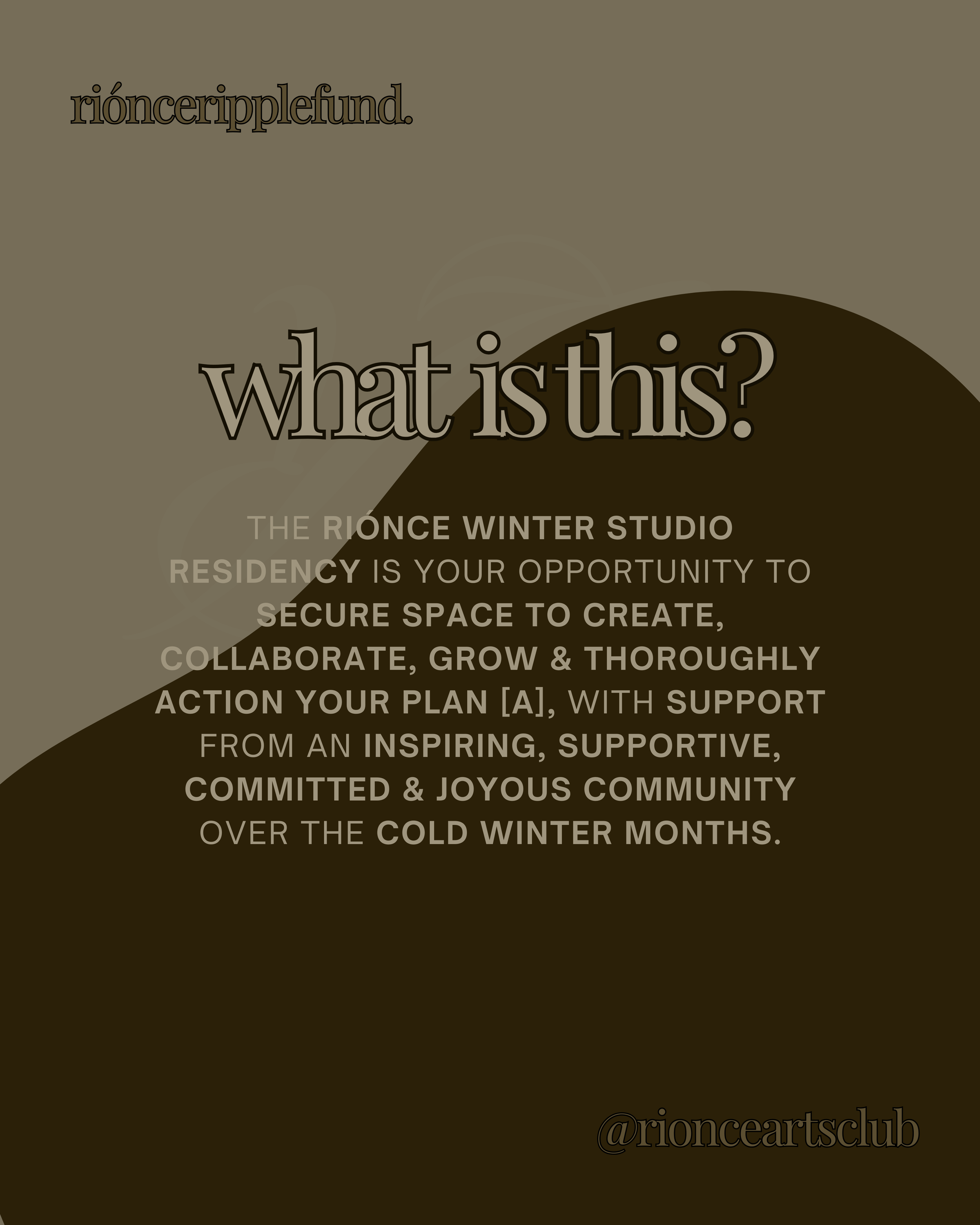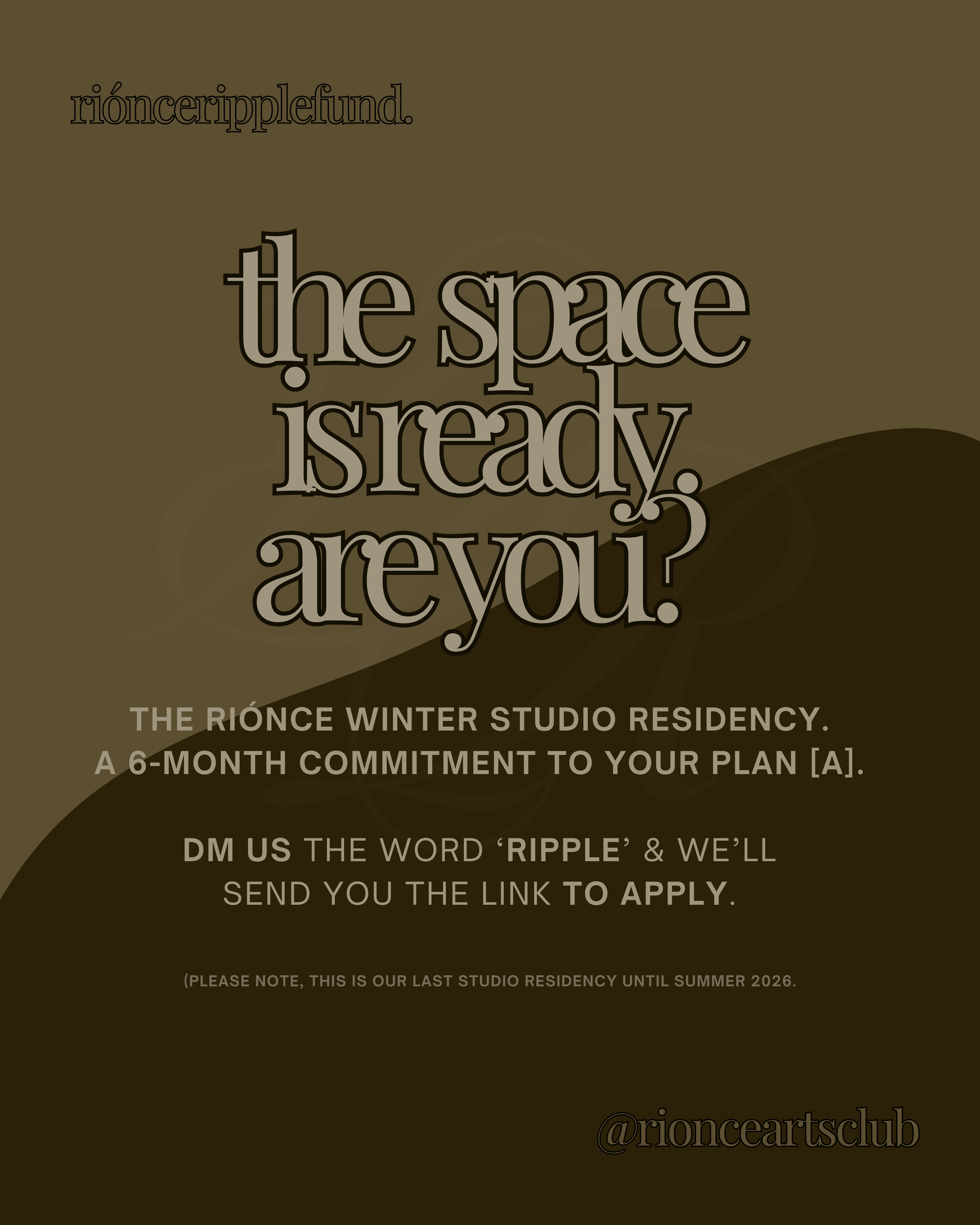 the riónce ripple: winter studio residency [wave iv] is a creative programme offering 6 months of free or part-funded studio access for photographers, videographers, music artists, djs & event curators who are already in motion.