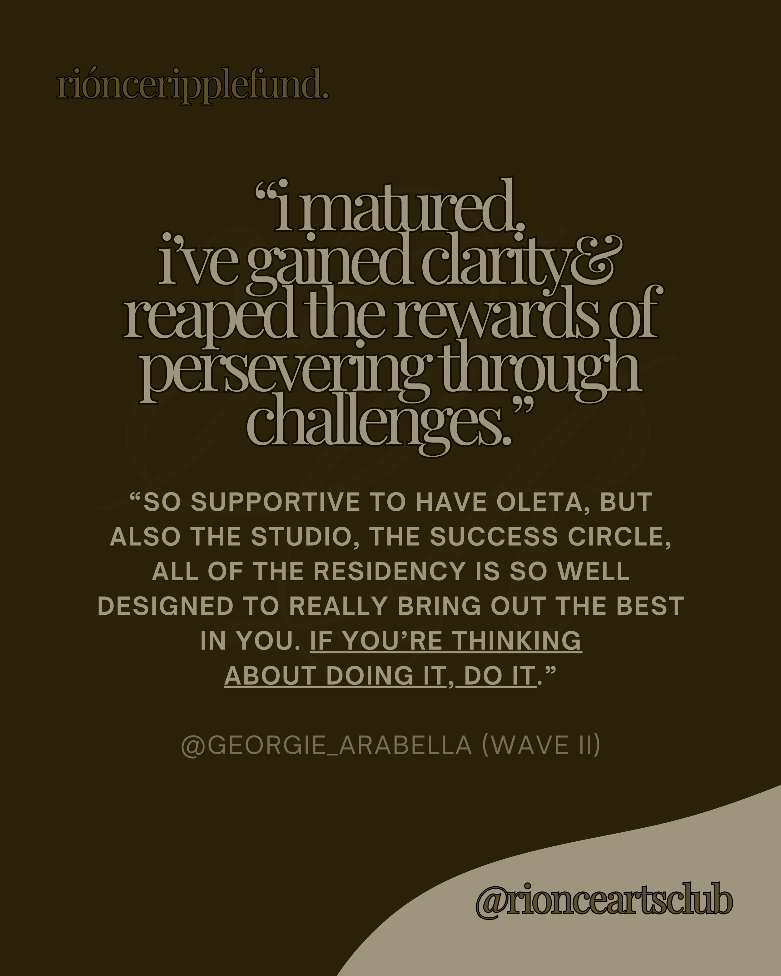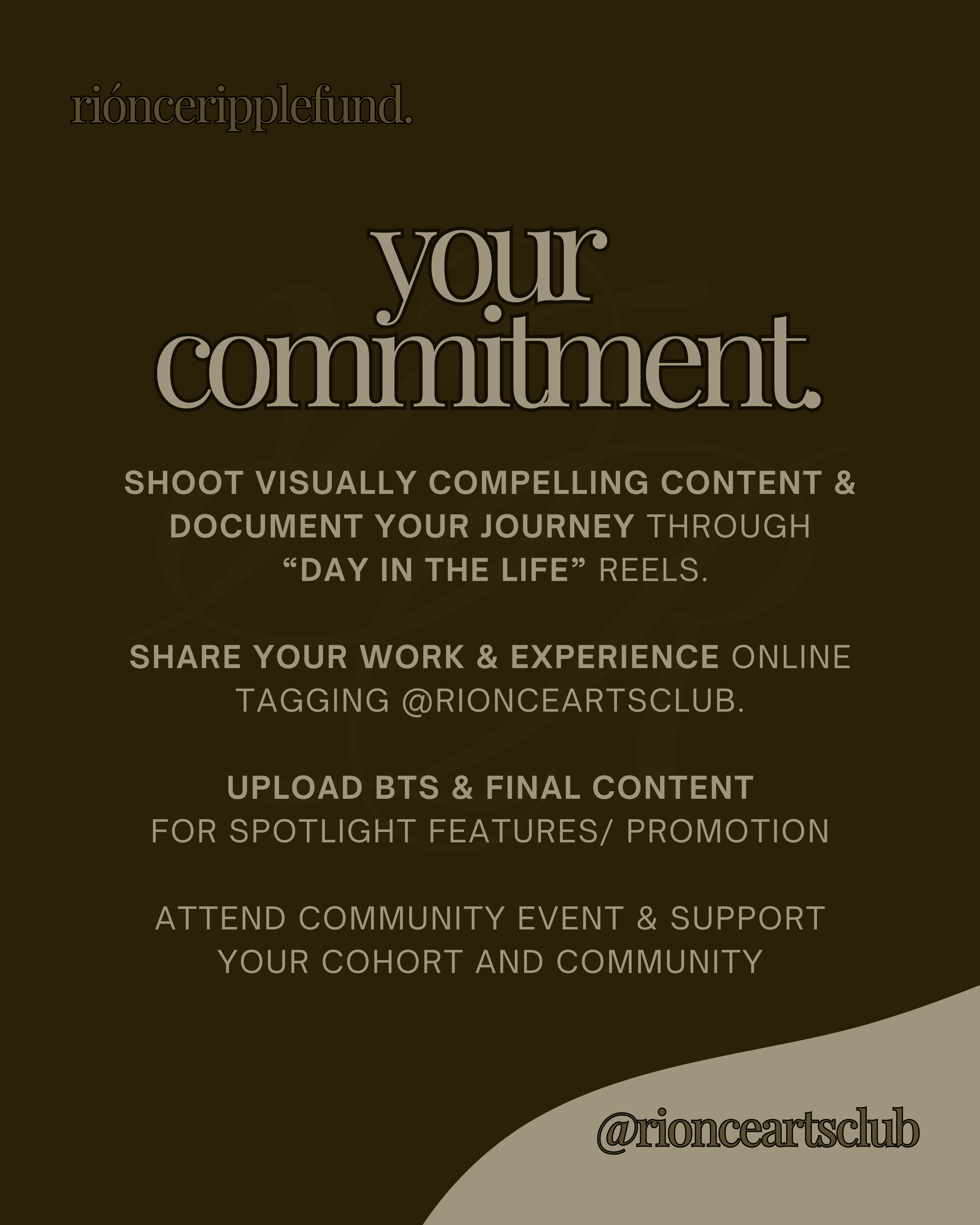 you’ll Create a 1–2 minute video reflecting on your experience at Riónce Arts Club. The video will be shared on our website, Instagram, and newsletters to promote the Ripple Fund and inspire future participants.